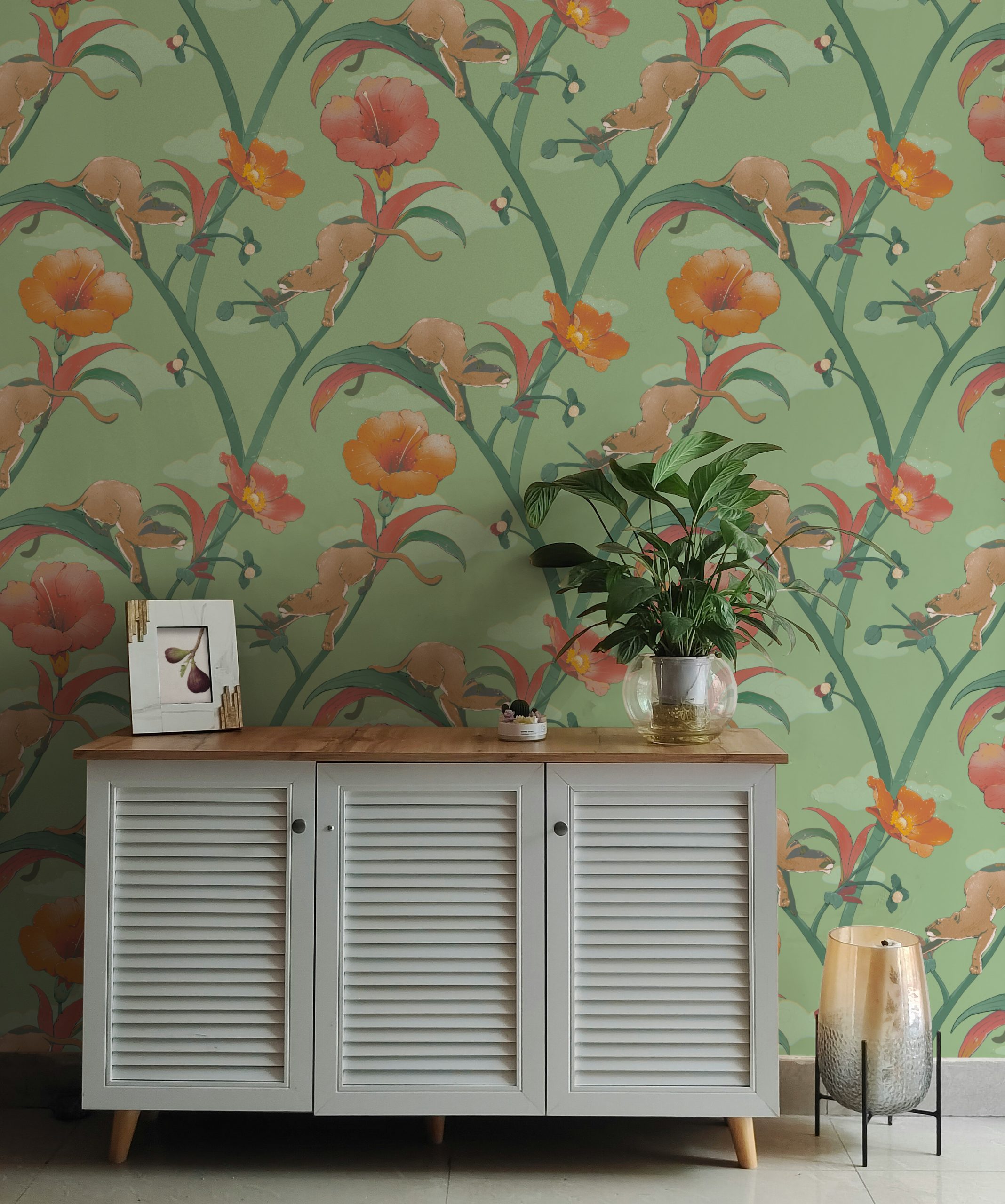 Fusti grandi e forti si innalzano verso il cielo alternandosi a pantere e boccioli in piena fioritura.