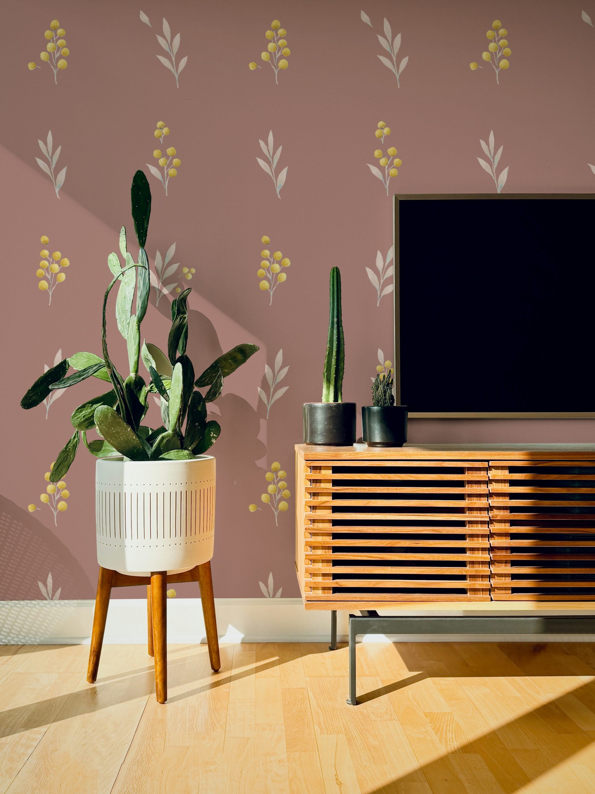Delicati rametti floreali dipinti con sfumature tenui cadono dolcemente e trasmettono un senso di calma e serenità
