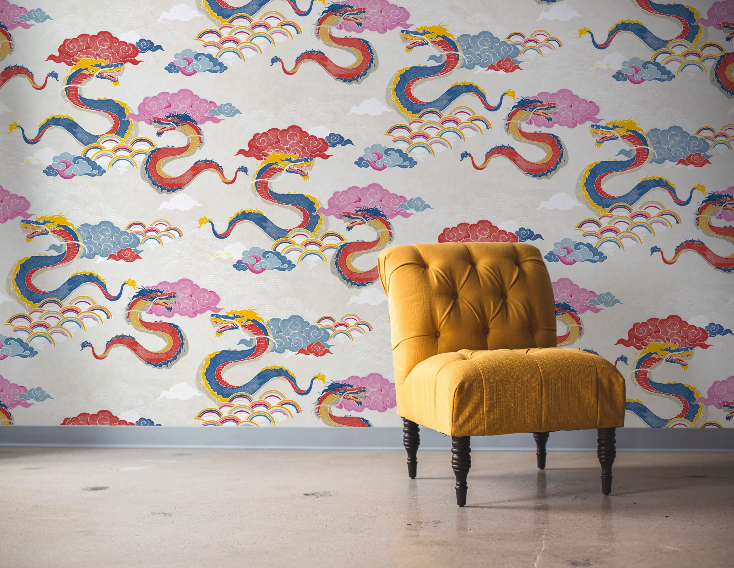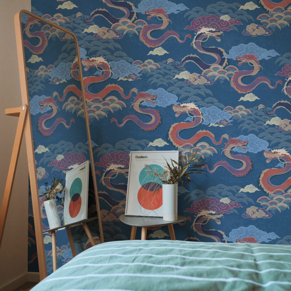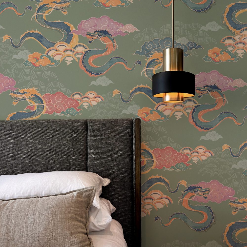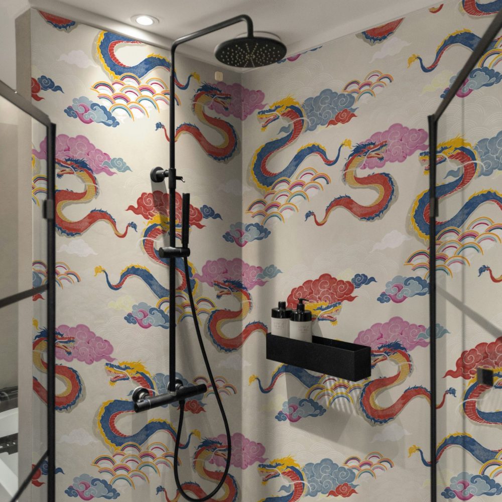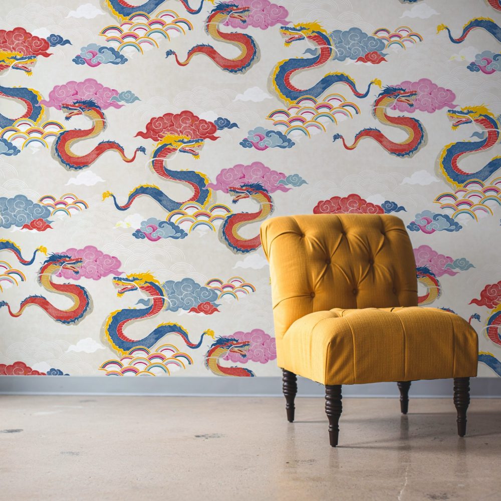 Draghi volanti, nuvole in stile manga e arcobaleni colorati sono la nostra ispirazione per questo motivo orientale.