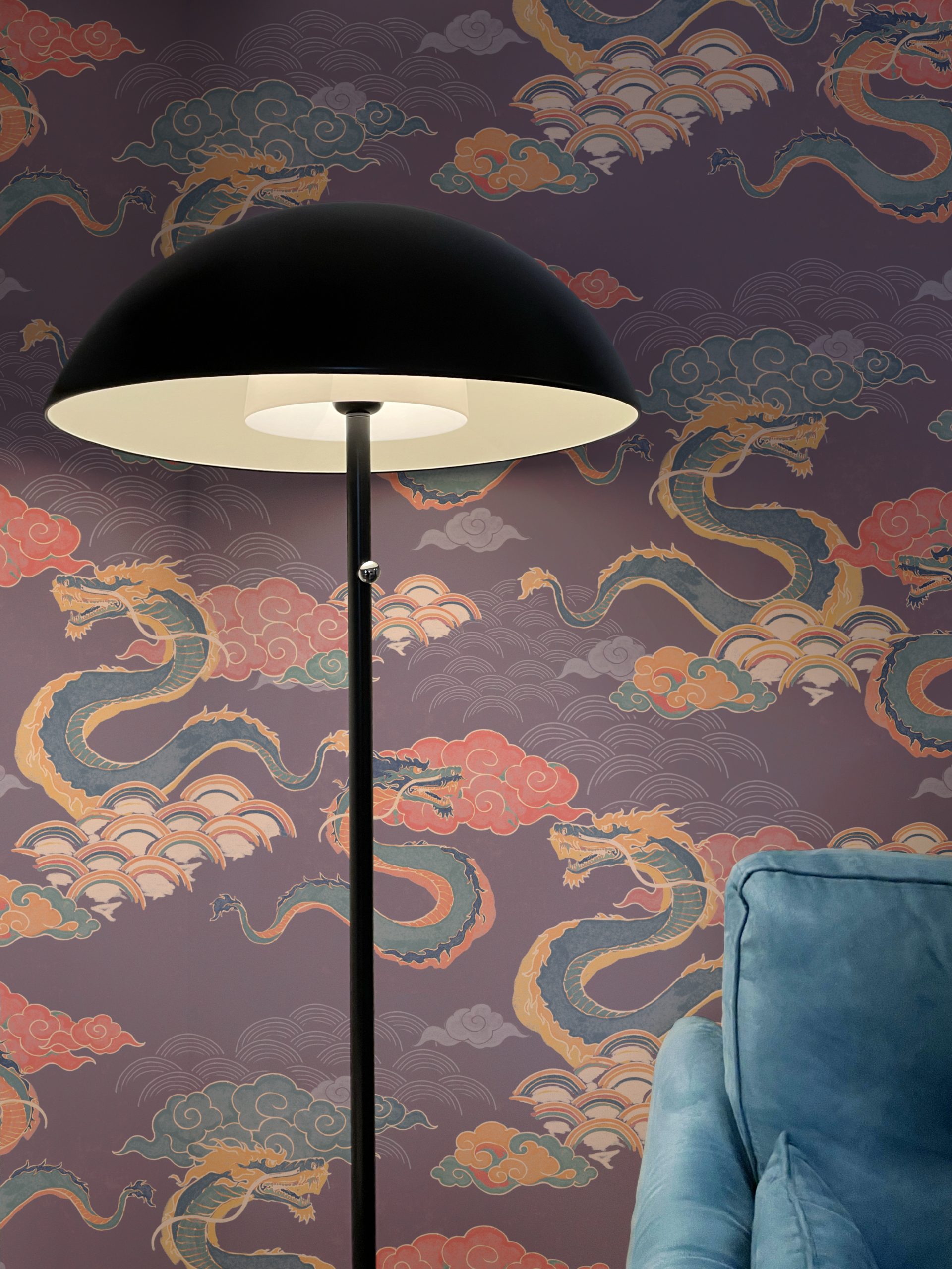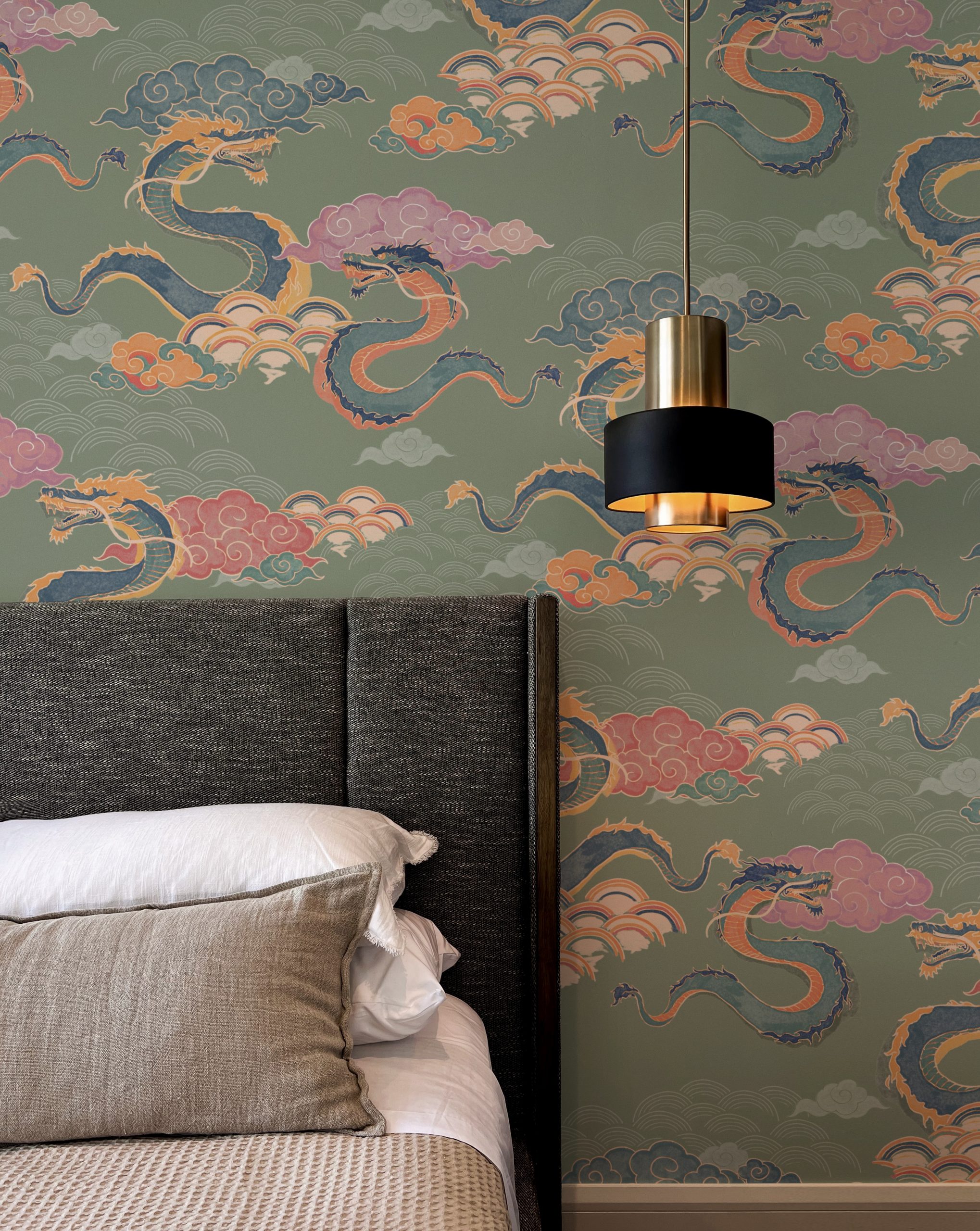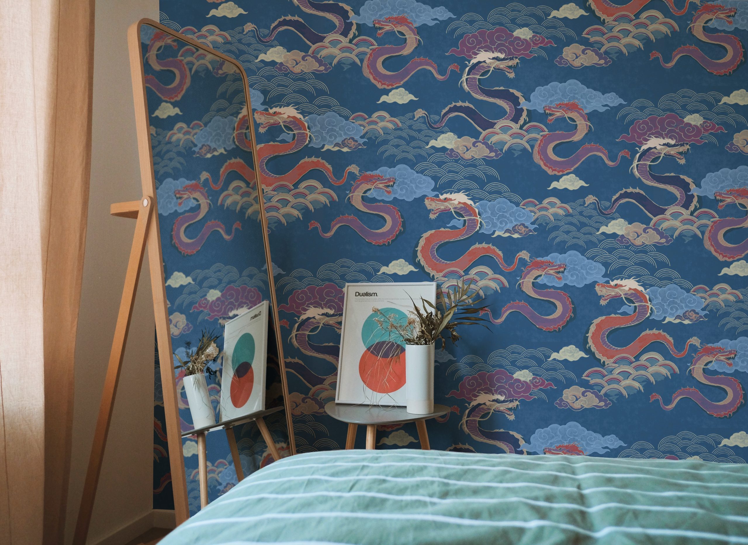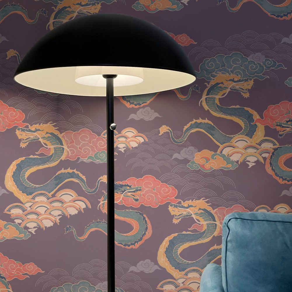 Draghi volanti, nuvole in stile manga e arcobaleni colorati sono la nostra ispirazione per questo motivo orientale.