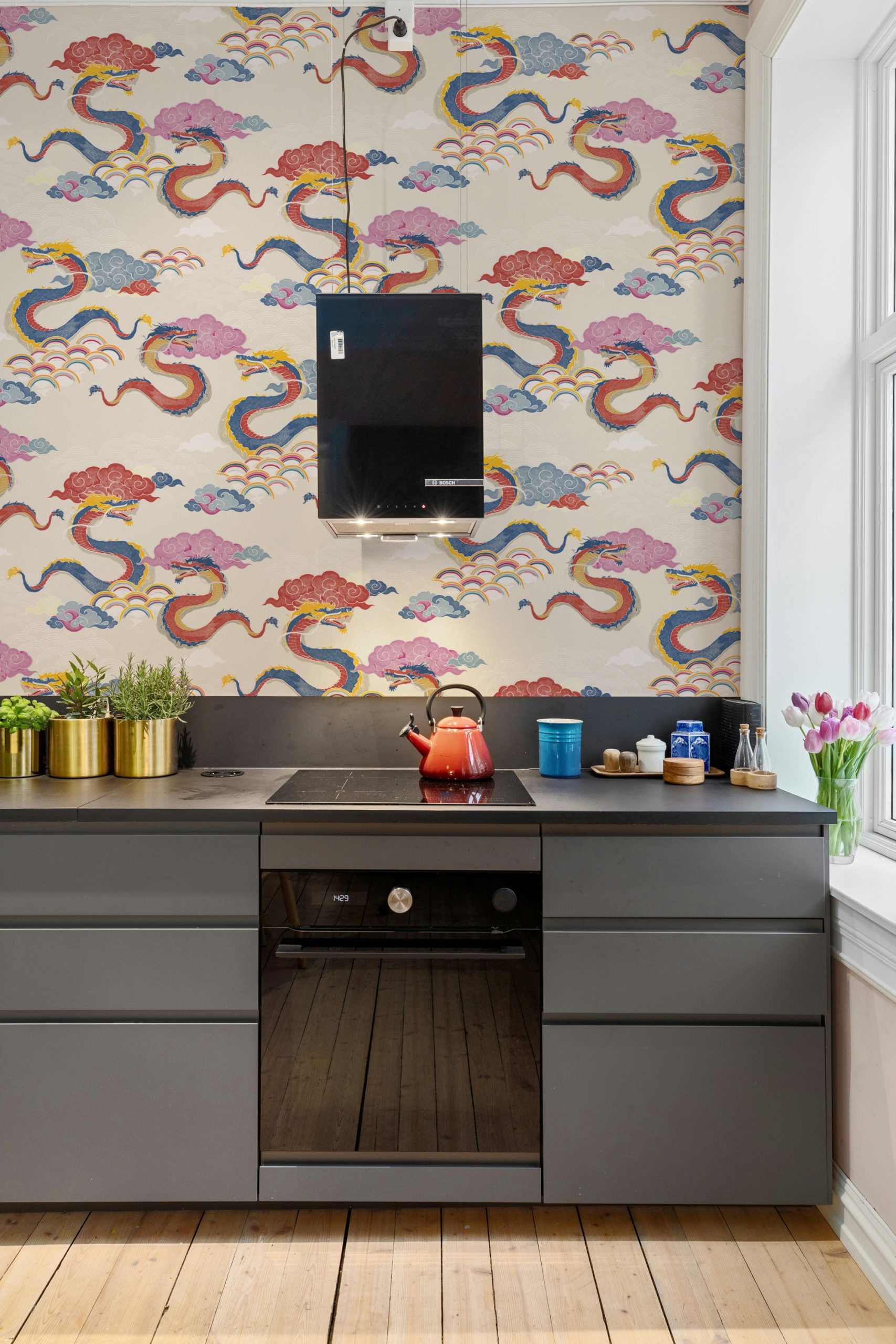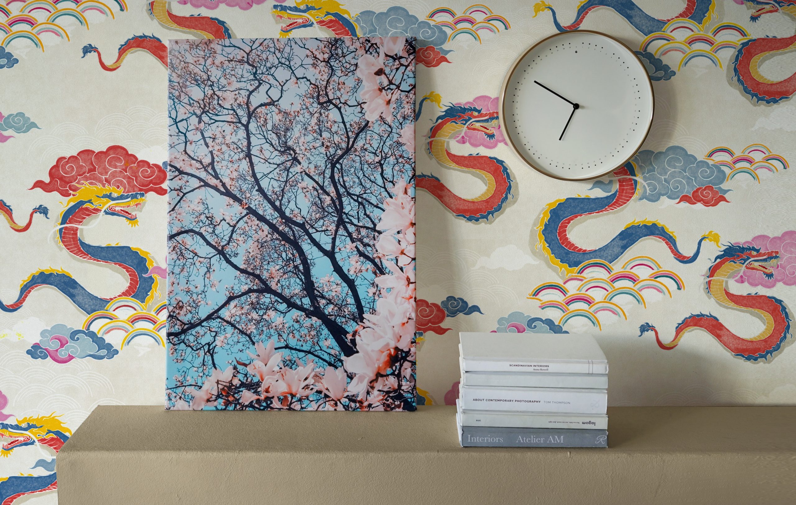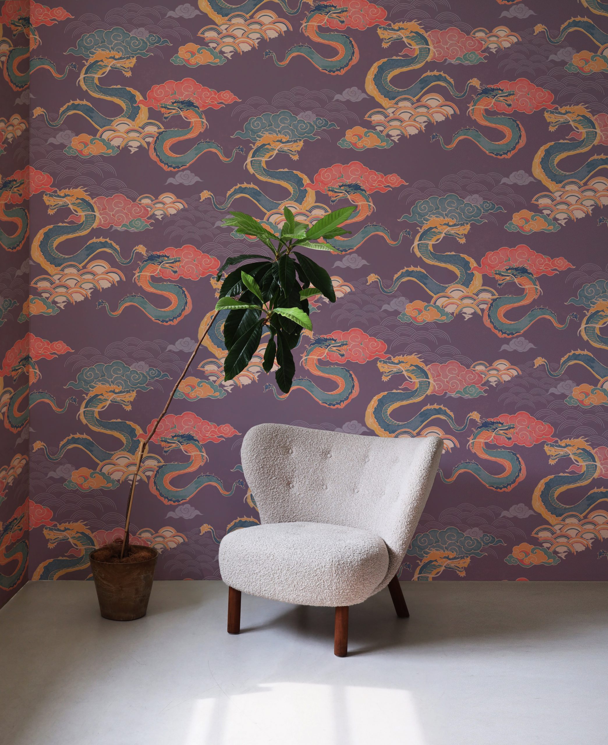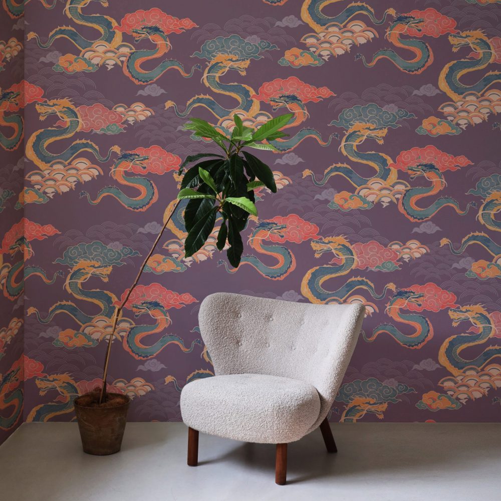 Draghi volanti, nuvole in stile manga e arcobaleni colorati sono la nostra ispirazione per questo motivo orientale.