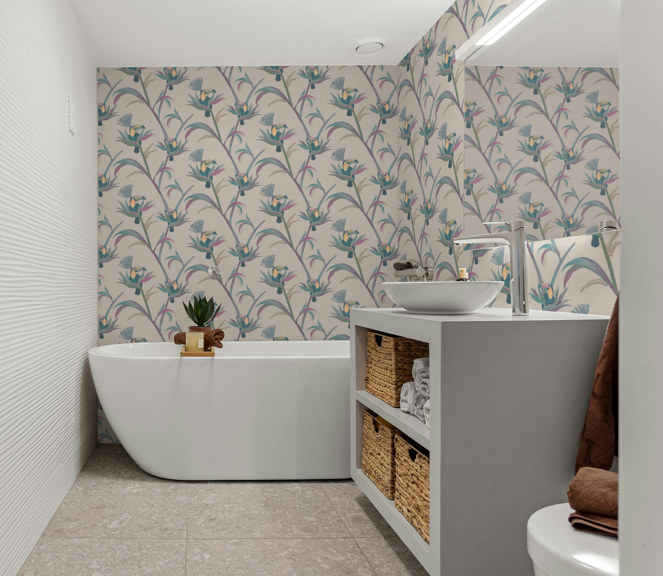 Le nostre carte da parati possono essere pulite con un panno morbido e umido.​Si sconsiglia l’uso di detergenti per preservare i colori e il disegno, tuttavia i nostri materiali sono rifiniti da uno strato impermeabile che consente la pulizia con detergenti non aggressivi in ​​caso di macchie non rimovibili altrimenti.